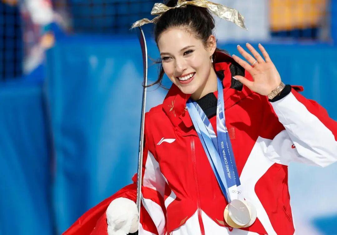 她成为冬奥会历史上,首位卫冕自由式滑雪女子U型场地金牌的运动员;个人冬奥奖牌数上升至6枚,冬奥金牌升至3枚,均为自由式滑雪运动员历史最多;追平王濛6枚奖牌纪录,并列成为中国冬奥奖牌数最多的运动员;成为中国冬奥个人项目获得奖牌最多的运动员;成为自由式滑雪历史上唯一连续两届冬奥会都能获得三项奖牌的运动员;3枚奖牌与宁忠岩并列,成为米兰冬奥会获得奖牌最多的中国运动员。