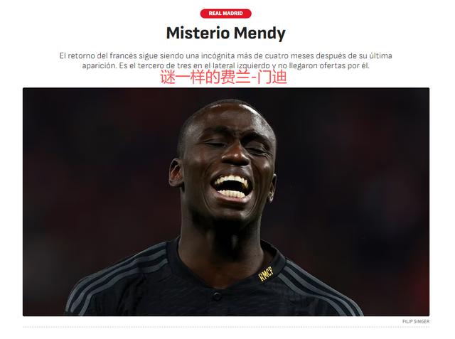 今年夏天,皇马5000万欧元引进卡雷拉斯,后者成为皇马的主力左后卫。有人打主力,就有人让位。9月11日的《阿斯报》指出,费兰-门迪如同消失,超过4个月没有出场,法国边卫何时复出,谁也说不准。
